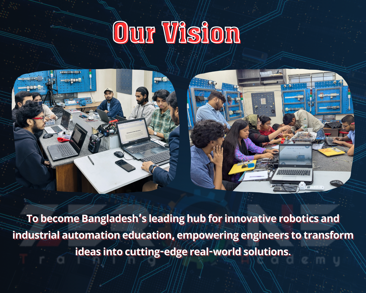 Our Mission is to foster groundbreaking innovations by developing transformative project ideas. We are committed to delivering top-quality services that meet the needs of our clients in microcontrollers, PLCs, and automation training—while ensuring complete customer satisfaction. By assessing current demands and aligning with future industry needs, we aim to help clients build a secure and successful career, while nurturing long-term relationships. Above all, enhancing skills and empowering growth remains our core mission.